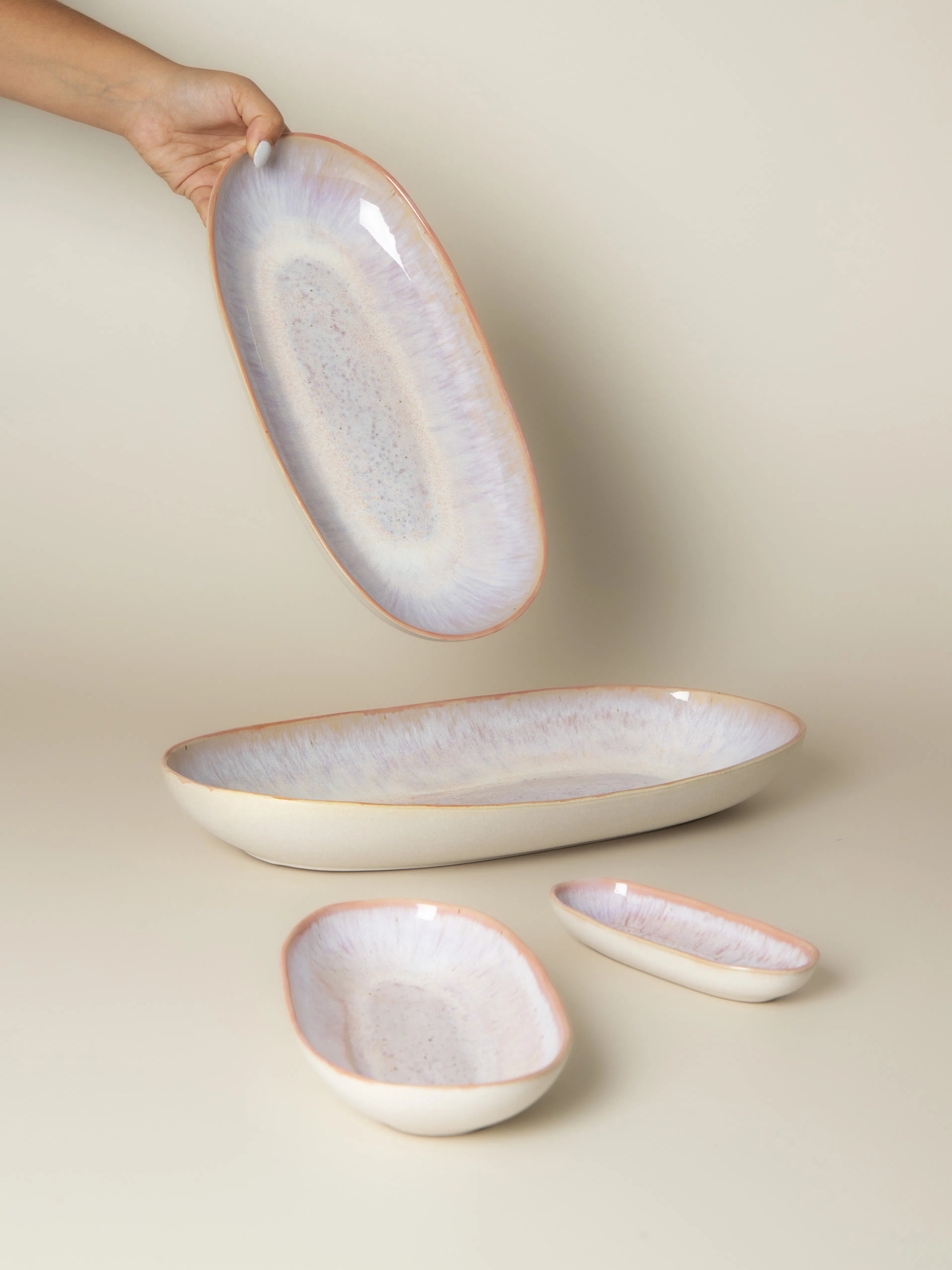Þessir einstaklega fallegu, handgerðu framreiðsludiskar koma frá portúgalska fyrirtækinu Terrafina. Diskarnir eru í fjórum mismunandi stærðum og henta því undir hið ýmsa meðlæti með matnum. Í Aurora línunni má finna ýmsar stærðir af diskum, skálum, bollum o.fl. Frábærar gjafir handa brúðhjónunum.