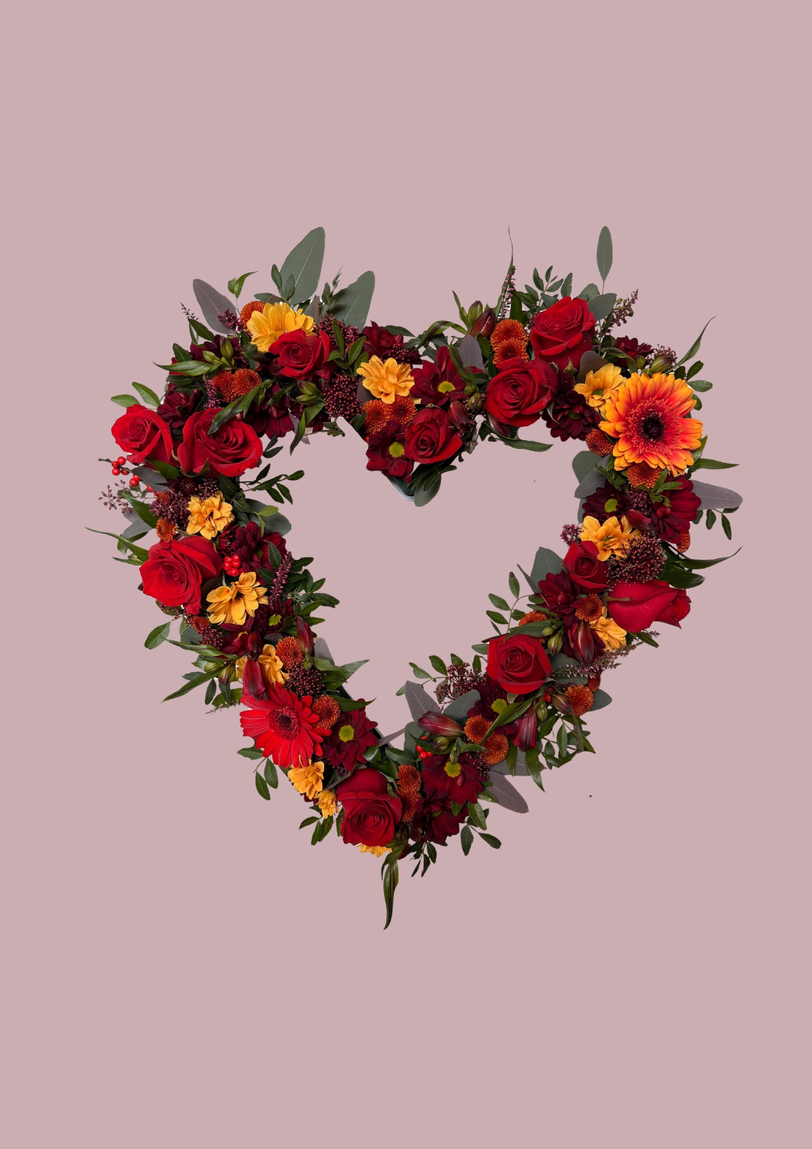 Hvert hjarta er einstakt handverk. Hægt er að óska eftir ákveðnum blómum og litatónum og reynt er að verða að þeim óskum eins og unnt er.