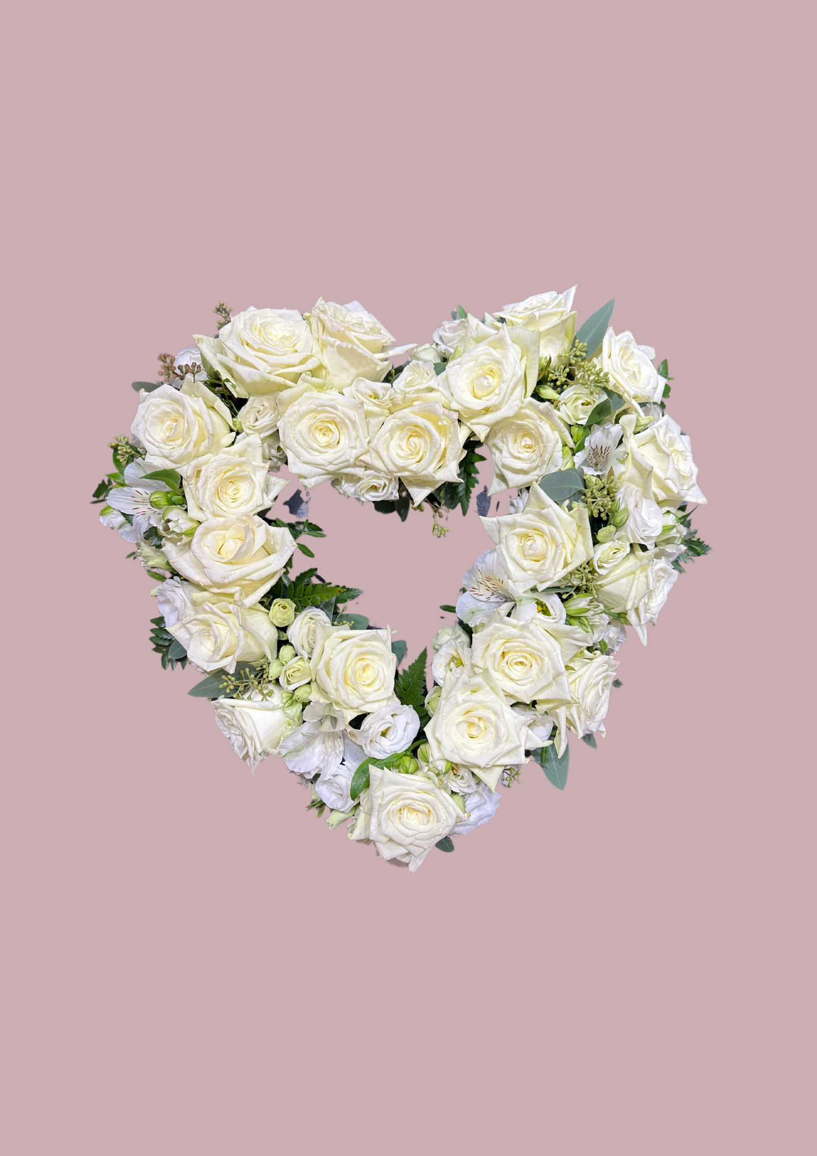 Falleg hjartaskreyting sem endurspeglar ást og virðingu við kveðjustund.