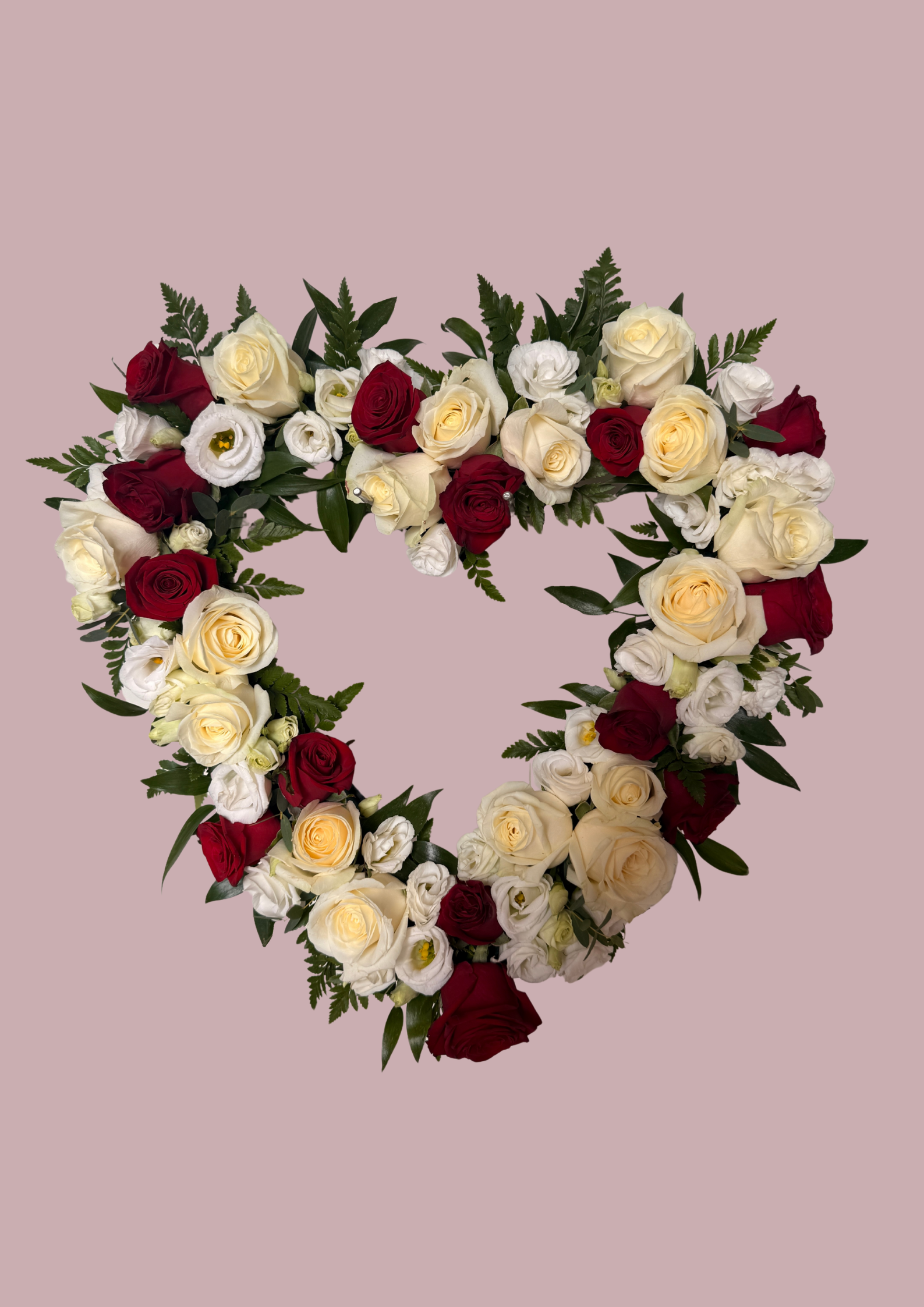 Hvert hjarta er einstakt handverk. Hægt er að óska eftir ákveðnum blómum og litatónum og reynt er að verða að þeim óskum eins og unnt er.