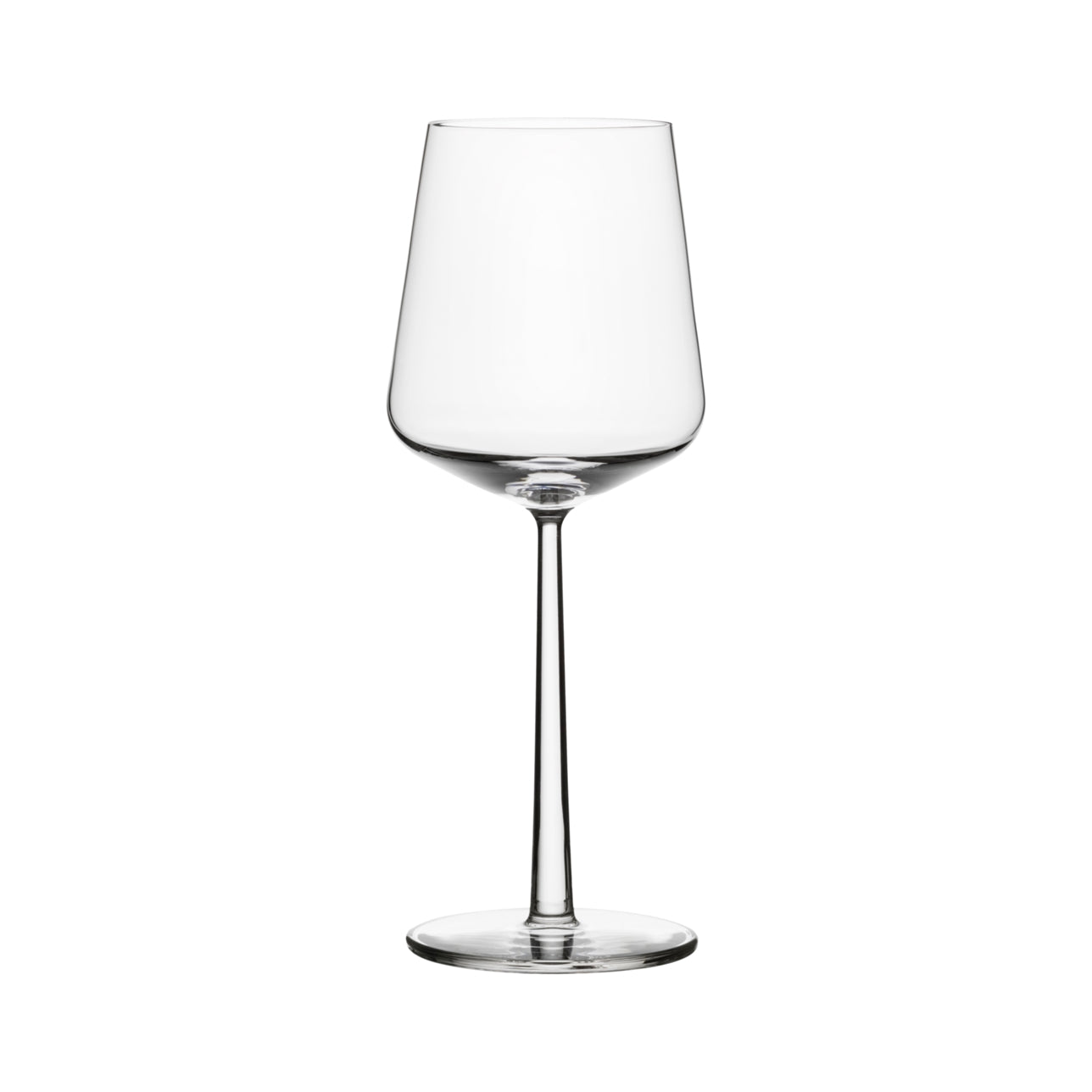 Iittala rauðvínsglös úr Essence línunni. Línan er hönnuð af Alfredo Häberli með því markmiði að hámarka fjölhæfni, einfaldleika og notagildi vínglasa - en fæturnir á glösunum í Essence línunni eru allir jafnstórir.