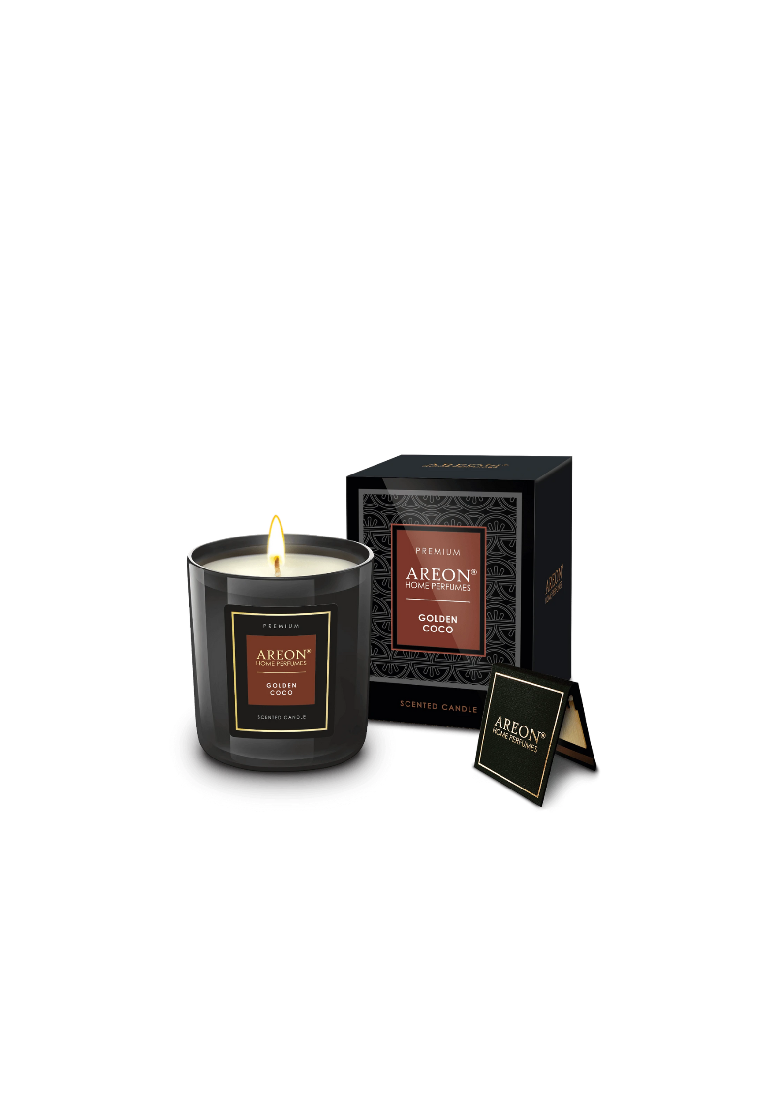 Golden Coco kertið frá Areon blandar sérlega mjúkri kókoslykt við hlýjan tón sem gefur heimilinu afslappað og suðrænt yfirbragð. Hentar vel sem gjöf eða til að bæta við stemningu í stofu, baðherbergi eða svefnherbergi.