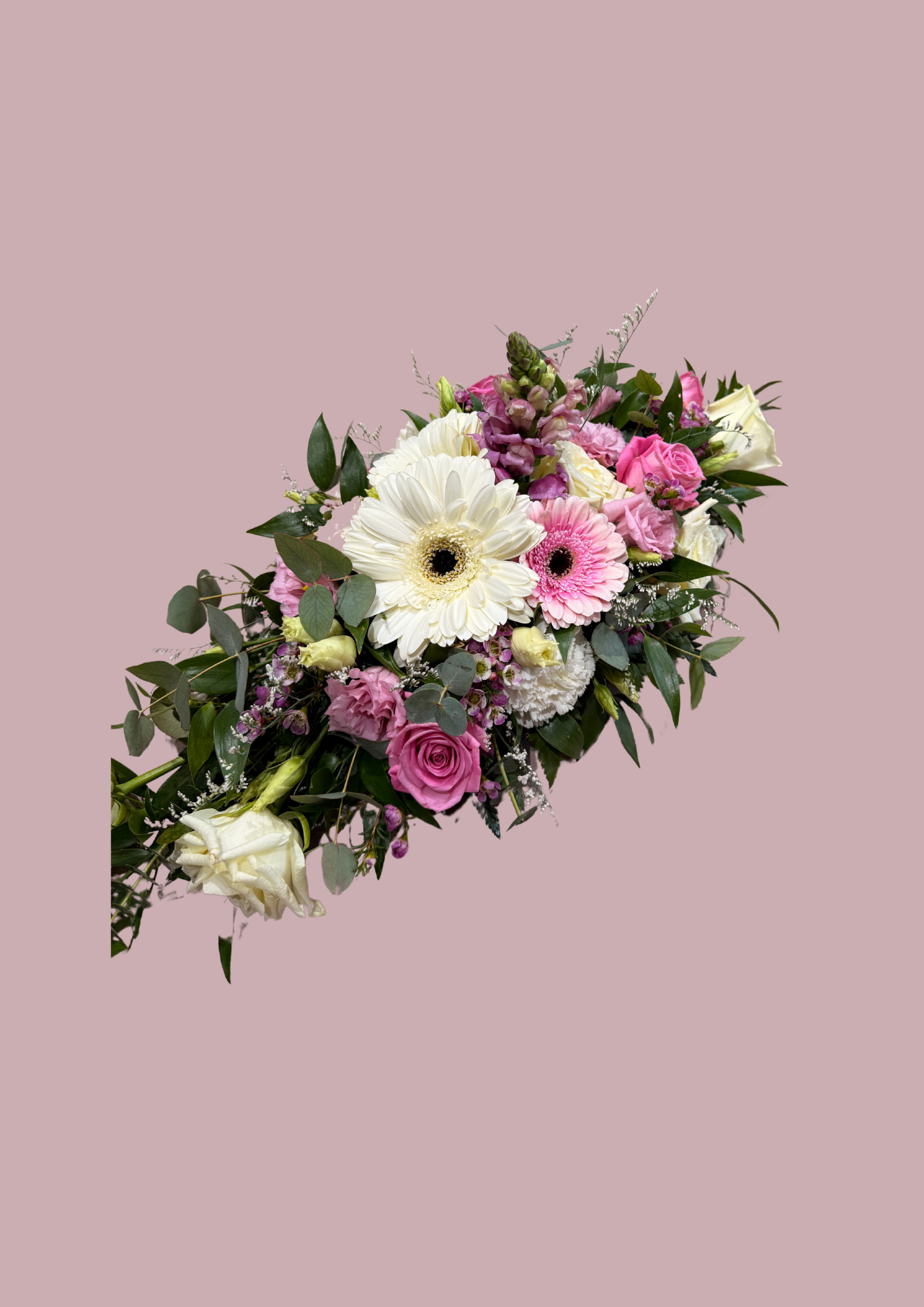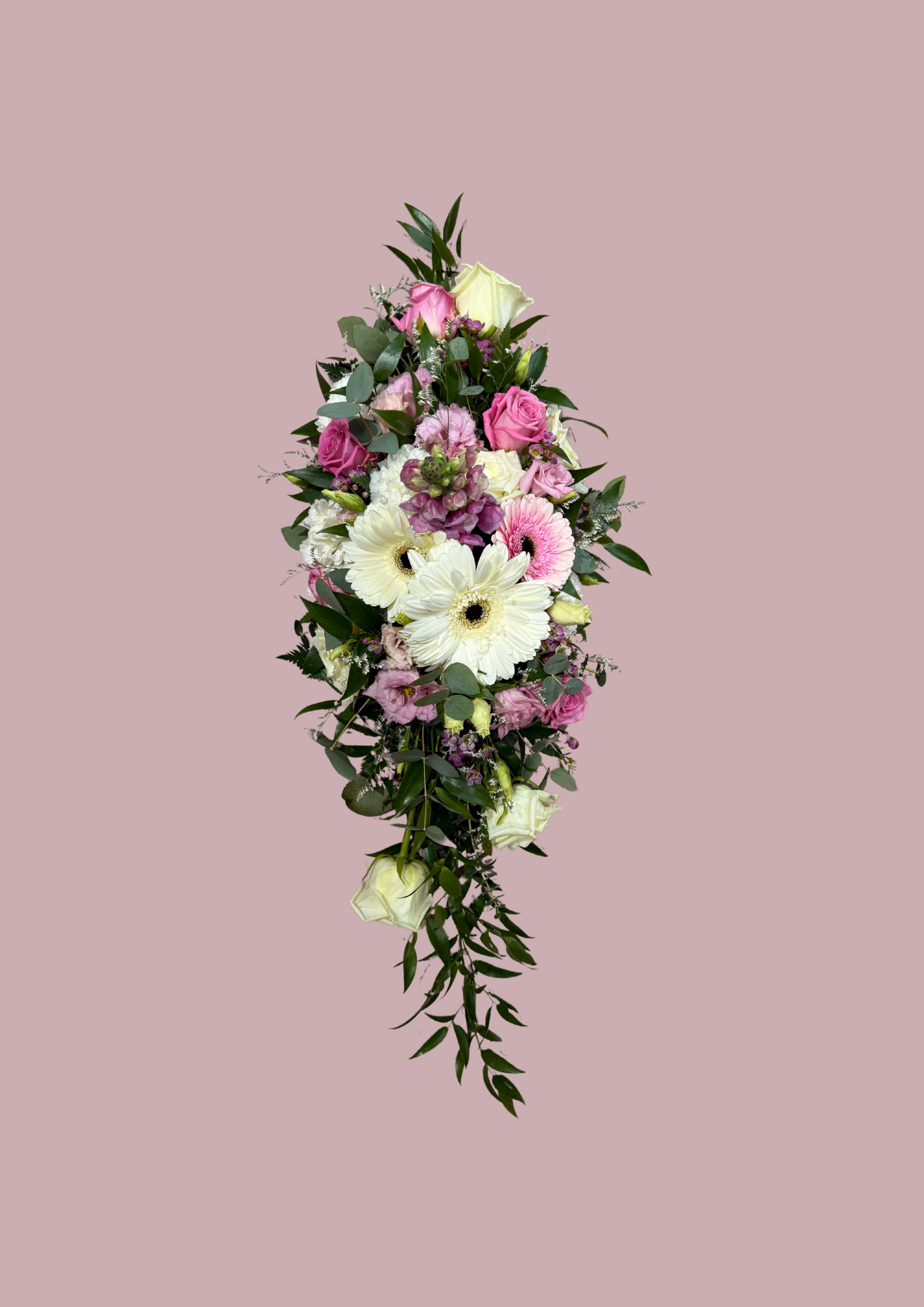 Hver kistuskreyting er einstakt handverk. Hægt er að óska eftir ákveðnum blómum og litatónum og reynt er að verða að þeim óskum eins og unnt er.