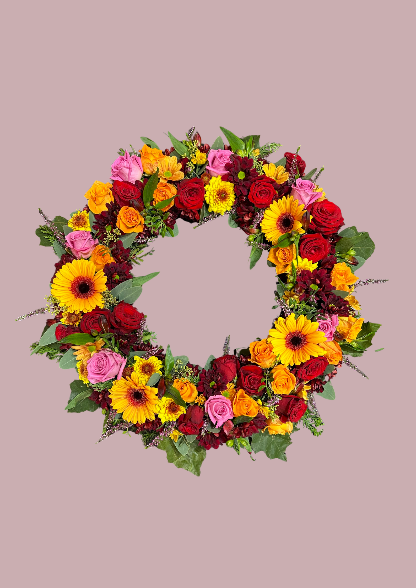 Fallegur og litríkur jarðarfarakrans sem endurspeglar hlýhug við kveðjustund.
