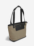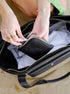 Taskan kemur með glærri tösku, renndu veski, litlum spegli og sér vasa fyrir skartgripi. Að innan er teygjanlegt hólf fyrir vatnsflösku og renndir vasar til að geyma verðmæti. Að framan er vasi með segullokun og band á hliðinni til að hafa sólgleraugun við hendina.