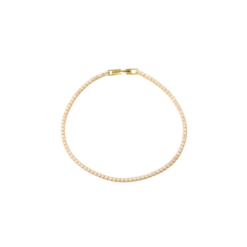 Afar fallegt tennisarmband frá Aqua Dulce. Á armbandinu eru glærir zirkonia steinar. Auðvelt er að festa á sig armbandið með nýju festingunni.