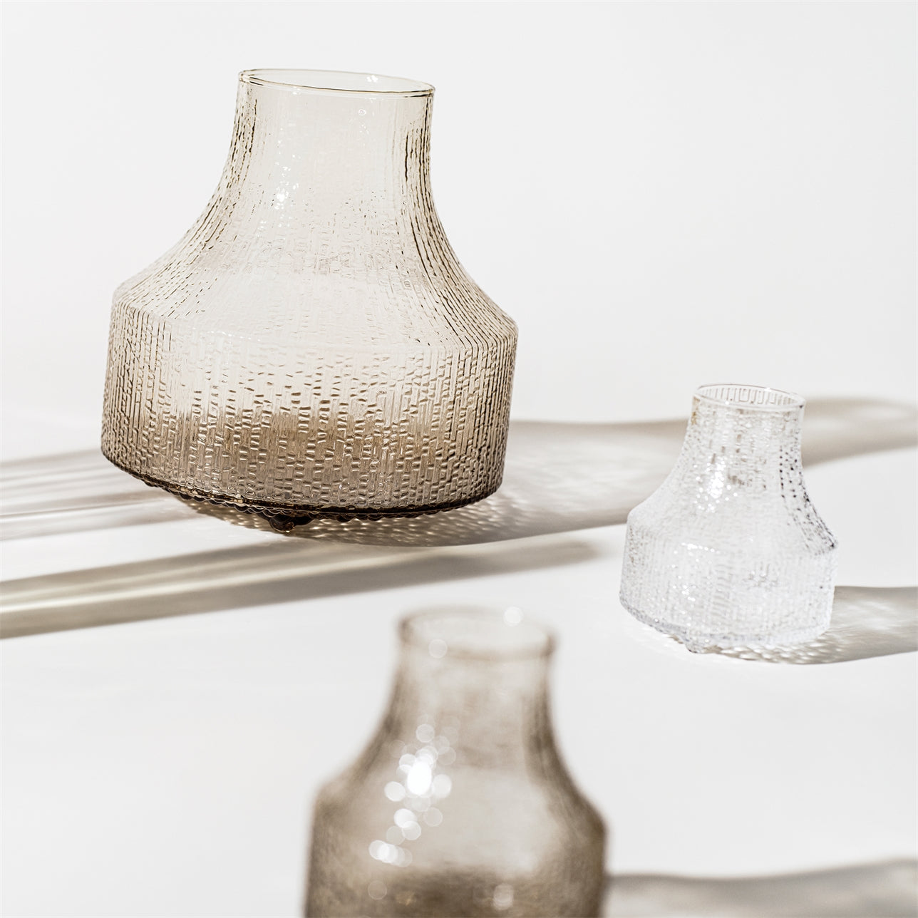Ultima thule vasinn er innblásinn af hinni sígildu glerlínu Tapios Wirkkala. Einkennandi yfirborð vasans, sem minnir á bráðinn ís í vorsólinni, gefur svip á heimilið – hvort sem í hann er sett eitt blóm eða grein. Hver vasi er munnblásinn í glerverksmiðju Iittala í Finnlandi, sem tryggir fyrsta flokks handverk og gæði. Hægt er að pasa vasann við önnur verk úr Ultima Thule línunni.